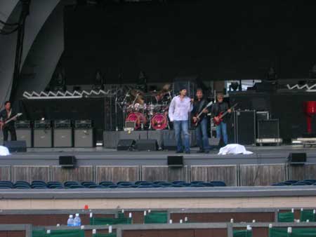 The band got extra time for a full soundcheck today. Under grey skies, the guys ripped through a more varied set, featuring I'll Be Alright Without You, a very loose La Raza Del Sol, Rubicon, the big ballad Still They Ride (sung by Deen) and a rocked up Message Of Love.