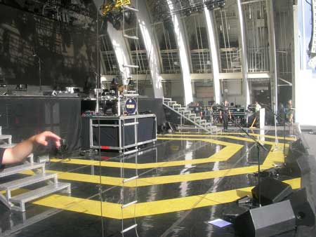 The setting up of both stages pre-show allows for a quick change over between sets, but reduces the space available to the band opening...ie. Journey.