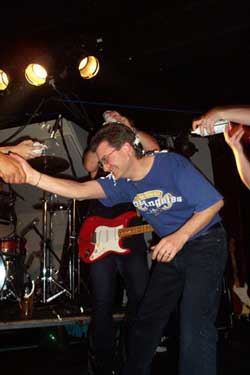 Jeff and the guys headed back to Peter's house to freshen up; while Richard and I made sure everything was sweet at the gig. The next move by Ross, the owner from hell, was to bitch about the support bands playing too long and taking too much time to change between sets. Time is money apparently and I was taking up both for him.