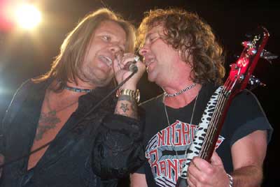 CLASSIC CUTS FROM HAREM SCAREM'S VAULT TO SEE THE LIGHT: Fantastic news for Harem Scarem fans! Plans are underway for an official release of the band's earliest recordings and lost demos. Wheels were set in motion after I was told of a website listing the original ultra-rare Harem Scarem 10 track demo CD for sale for $995 U.S. The CD was a limited run of some 50-100 copies, which were shopped to labels before the release of the band's self titled debut. Knowing how often some of these old demos were being traded and the poor quality of them, plus the listing of this CD prompted me to call Harem frontman Harry Hess and tell him about it and suggest that they be officially released by the band. He agreed. The details and timing of such a release are still very much up in the air, but it will happen this year. Harry commented that it was insane that these old songs should command such a price and he wouldn't want anyone to have to pay amount for anything. He said he will remaster the tracks at the band's studio and try and put together a good value package. The release, when finalised, will contain the original 10 band demo's, with Harry adding that he would try and dig up some old tracks that no one has ever heard. Naturally the details will be announced at a later date, but be assured that plans are underway. I took the opportunity to ask Harry about the new Harem Scarem album. The guys are writing now and will start recording shortly. It is hoped the album will be ready to mix by the end of May. As for style? Harry says it is definitely a rock record, with the band continuing on from the Weight Of The World sound. He said that he and the rest of the guys were very comfortable with what they are doing now and have happily accepted what the fans want to hear and will try and deliver on that. Good news all-round I'd say! Stay tuned... KISS AUSTRALIAN SHOW SELLING WILL: Kiss will hit Australia shortly for a one-off show in Melbourne with the Melbourne Symphony Orchestra. The show at the Telstra Dome has been subject of several rumors. To clear the air, here are the facts. The show is not in danger of being cancelled due to slow ticket sales. Kiss have actually sold 30,000 tickets so far, not the rumored 10,000. Additionally, the line up will be Gene Simmons, Paul Stanley, Peter Criss and Tommy Thayer. Original guitarist Ace Frehley is not back on board for this gig, although I continue to hear rumors that the door is open for him to return for the US Summer dates with Aerosmith. GOTTHARD AND KINGDOM COME COMBINE FOR EUROPEAN DATES: Gotthard have announced tour dates in support of their upcoming album Human Race. The album features the following tracks: Human Zoo . What I Like . Have A Little Faith . Top Of The World . Janie's Not Alone . Still I Belong To You . One In A Million . No Tomorrow . First Time In A Long Time . Where I Belong . Long Way Down . What Can I Do. The additional song Never Surrender is a bonus track for Japan. The European tour is supported by Break Out, Metal Heart, Musix and www.mano.de. A full list of dates is listed in the Tour Dates area. ![]() DEF LEPPARD STILL HAVE A LONG WAY TO GO: The new Def Leppard single Long Long Way To Go is out February 24 in Europe and features the following tracks over 2 CD Singles: Now (live acoustic, recorded in Germany), Hysteria (live acoustic, recorded in Germany), Long Long Way To Go (live in Japan), Now (live in Japan), 10x Bigger Than Love (previously unreleased) and Gimmie A Job (previously unreleased) The single cover is another piece of work by Todd Perry. The video, which will be partly shot in Spain on February 5 & 6, contains a storyline by Phil Collen and will be directed by Clive Arrowsmith, the photographer responsible for the sleeve photos for X. After the video shoot, the band will go back to Ireland for rehearsals and press. Long Long Way To Go will be played live on Irish TV (RTE 1) on Friday, February 7, and the band will play another acoustic song (to be confirmed) on Today FM on February 10. ![]() DIO JOINS TWISTED SISTER, TNT AND Y&T: Dio will be the second headlining act (along with Twisted Sister) for the Bang Your Head 2003 festival. Also confirmed this week are Y&T and TNT. The Bang Your Head festival is held in Balingen, Messegelände, Germany on June 27th and 28th 2003. VINCE NEIL REVEALS NEW PLAN TO PROMOTE HIMSELF: From Undercover: "Girls, girls, girls / GIRLS GIRLS GIRLS" Vince Neil screamed on one of his more famous and now classic rock metal hits with Motley Crue. Now Neil is looking for more girls and he is offering $25,000 for the best one he can find. He is on a quest to find the sexiest woman in America. Of course there is a hidden agenda. The whole exercise is hyping up his next album called (drum roll please…) More Girls, Girls, Girls. Neil will release the album just in time for Valentines Day (how romantic). The former Crue frontman is heading to Vegas to host the More Girls, Girls, Girls "talent quest" on February 13th, at Jaguar's Gentlemen Club. He says it will be the "wildest, most Erotic topless competition ever held" and he is looking for "the classiest, most beautiful, most talented and of course the sexiest girls". According to the program "the contestants will be judged on four categories, original costume, Lingerie, poise and personality and THE LAP DANCE! As part of the competition and entertainment, some of the lucky soles in the star-studded audience will be chosen for the tantalizing lap dance performance". They also say "Vince Neil's Girls, Girls. Girls competition combines the exciting elements seen in the production of American Idol, with the sizzle found in the hottest beauty pageants around the world." And then what is next for Neil? He's going to franchise the idea. "Neil has committed to a "Girls" franchise, that will begin in Vegas, and will continue with worldwide competitions, including South Beach, Latin America and Cannes" they say. "Neil is working with an experienc