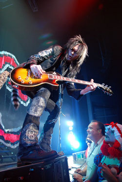 LOS ANGELES: HALLOWEEN ROCK WITH ALICE COOPER: By Gerry Gittelson - Melodicrock.com Los Angeles Correspondent / Story by Gerry Gittelson. Photos by Rhonda Woodfine Los Angeles -- Halloween was coming, and that was a perfect time for shock-rock king Alice Cooper to bring his latest theatrical concert tour to Los Angeles, so the 61-year old American pulled out all the stops Wednesday, Oct. 28 at the 7,000-seat Nokia Theatre – blood, confetti balloons, swords, crutches, straight jackets, a giant syringe and of course his trademark guillotine. From the opening song "Schools Out," through a whirlwind of his biggest hits like "Eighteen," "Poison," "No More Mr. Nice Guy," "Under My Wheels" and "Billionaire Dollar Babies," Cooper commanded the stage like a man half his age. The crowd was loud and appreciative, and there was always something a little weird happening – like Cooper parading around with a sword stuck through a baby's head – to keep things interesting. Cooper has a top band, too, led by guitarists Keri Kelli and Damon Johnson. Kelli has played with everyone from Big Bang Babies to Vince Neil, and Johnson has played with John Waite and other national acts. They work well together, and during an encore reprise of "Schools Out" at the end of the evening, none other Slash strapped on a guitar, and the place went crazy. Former Kiss guitarist Ace Frehley opened the show. The crowd enjoyed watching smoke rise from his guitar on "Shock Me," and the best song of the night was a well-executed version of the Kiss hit "Cold Gin." xx![]() GUN RETURN TO RECORDING DUTY WITH TOBY JEPSON: Following Toby Jepson's decision to join Scottish rock band Gun we are delighted to announce the band's debut mini album Popkiller is now exclusively available to preorder through Townsend Records. Preorder the new mini-album now by clicking here. The album consists of five brand new studio recordings including: 'Let Your Hair down', 'Seraphina', 'Popkiller', 'Ripping Up The Letters' and 'The Only'. Here's a few words from Toby on the new material... ''I see this as a great new dawn for Gun, we are so excited about the music and feel we have created some cool new tunes that stand up to anything the band have done in the past. It is a new time and we hope that the music speaks for itself; we want to take it out there and take the band back up to where it belongs, on big stages delivering emotionally charged music that can inspire and entertain in equal measure..." In support of the band's great new album 'Popkiller' we have a limited amount of framed album artwork prints signed by all the band members. Everyone who pre-orders 'Popkiller' will be entered into our special draw winning one of these extra special Gun items. After returning from a triumphant Spanish tour, Gun will shortly begin their full UK tour in support of their new Popkiller album, tickets available from venue box offices & www.gunofficial.co.uk.