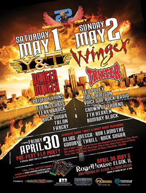 ![]() MelodicRockFest 2 is just over 6 weeks away, so time for a few updates regarding the festival. - Kevin Chalfant has requested we do something special with his and pal Jimi Jamison's sets. So it will be something like this: a combined performance, with no break between set, with Jimi performing with Kevin's backing band. Kevin's set will now be billed as the Voices Of Rock Radio and will include special guest Derek St. Holmes (Ted Nugent Band) and maybe another guest. Plus Jimi of course, before Jimi takes center stage for his own solo material. - Tickets arrive back from the printer tomorrow, so will be sent out airmail to all this week! Expect delivery within 5-10 days. - Refunds: I am no longer refunding any VIP weekend tickets due to the W.E.T. cancellation. The festival itself is going on without any further alteration and I appreciate the support on this issue. - Sponsors: Despite several weeks of looking for an official event sponsor, I have come up empty. It has been impossibly hard to get any business (large or small) to support the show and even the US brewing companies seem to have dry wells. A cash sponsor was one of the vital issues that took away from MRF1, it would be great to have that backing this time around, given the caliber of the lineup. I am very grateful to a few individuals that have helped sponsor the event out of passion for this scene, but it would be great to have a company on board also. If anyone has any connections to any forward sighted companies that would like to be involved in the show, please let me know. - Radio Commercial: Thanks to the always brilliant ARfm, there is now a 1 minute audio commercial for the event, which I hope to get to radio soon. But you can also download it yourself and help spread the word around. A YouTube clip of the advert will be online this week. Download Here. - Local advertising in the Chicago area will be taking place from next week, but if anyone out there can print and distribute flyers, please contact me. - A brand new updated Press Release is also available for the show at the official website. - On Friday night: I'm hearing Rob Lamothe has a very special acoustic set for eager fans. - Finally: a Credit Card hotline for ticket orders is now in place for those that don't have Paypal. Please call Revolution Tickets at: (USA) 312-675-8025. |