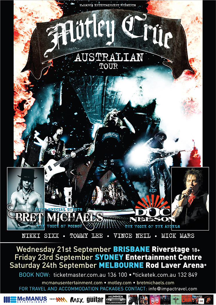 FRONTIERS LAUNCHES NEW YOUTUBE CLIPS: Frontiers Records present two new YouTube videos for fans to check out. The first is the brand new Primal Fear single Bad Guys Wear Black - from the album Unbreakable out EU: January 20 / USA: January 24. Digital single out now! The second clip features this month's new Frontiers releases. For more info: www.frontiers.it. xx ERIC MARTIN CHECKS IN: Eric Martin checks in: "It's been an incredible year with Mr. Big. We've been to Japan, Southeast Asia, Europe, USA, South America, back to Europe and finishing 2011 in Indonesia right now. I'll be enjoying a few weeks off with my family for the holidays and then it's back to work. I have a few upcoming shows on land and at sea before I get to work on some more recording. Hope to see you at one of these shows. January 27, 2012 - Eric Martin Band at George's Night club, San Rafael, CA. The last George's show sold out and people were desperately trying to get tickets last minute. Don't wait, this show is already 60% sold. Elephant Listening Project is also on the bill. February 4, 2012 - Eric Martin Band @The Boardwalk, Orangevale, CA. Eric returns to Sacramento for his first performance since 2008. February 25-28, 2012 - Join the Eric Martin band on 2012's Monster's or Rock Cruise to the Bahamas. It's going to be a bay area reunion with Tesla, Y&T, Night Ranger and many more bands on the ship. MÖTLEY CRÜE IN SIN CITY - THE WORLD'S MOST NOTORIOUS BAND LAUNCHES LAS VEGAS' FIRST-EVER HARD ROCK RESIDENCY: Three decades after beginning its iconic journey of debauchery and decadence, Mötley Crüe has announced plans to invade Las Vegas with the city's first-ever hard rock residency: Mötley Crüe In Sin City. The world's most notorious band will he heading to the world's most notorious city where they will perform an extended run--starting February 3 through 19--at The Joint at Hard Rock Hotel & Casino in Las Vegas. Tickets go on sale tomorrow, Saturday, December 3 at www.motley.com, www.thejointlasvegas.com, www.ticketmaster.com and the venue box office. VIP seating and packages will also be available. The shows are produced by AEG Live. 2012's Mötley Crüe In Sin City show is sure to leave the loud impression that what happens in Vegas will be heard around the world. Vocalist Vince Neil, guitarist Mick Mars, bassist Nikki Sixx and drummer Tommy Lee have big plans for Mötley Crüe In Sin City to create a never-been-done before and incredibly interactive Vegas experience. Exact details about the showexpected to supersede the band's high standard of productionare being kept under wraps for now to keep an element of surprise for fans. The engagement falls during a holiday-packed time in the calendar year: Super Bowl Sunday, Valentine's Day and President's Day. Last night the band officially announced the news on CNN's "Piers Morgan Tonight." "It is a dream come true for me especially living in and loving Las Vegas," says singer Vince Neil. "I am thrilled that a guy like Piers Morgan would help kick it off!" Adds drummer Tommy Lee, "I don't know about you, but when I think of Mötley Crüe I think of filthy sex, drugs, a REALLY big show and way too much fun... sounds like Las Vegas doesn't it? A match made in heaven!!!" "We are very excited to announce our upcoming partnership with legendary rockers Mötley Crüe," said Paul Davis, vice president of entertainment at Hard Rock Hotel & Casino. "The one-of-a-kind production will be the most unique, interactive, fan-driven concert experience the band has ever created. Mötley Crüe is a perfect fit for the Hard Rock and we can't wait for this unforgettable residency to begin!" Adds Bobby Reynolds, Vice President of Booking for AEG Live Las Vegas, "We're thrilled that Mötley Crüe is creating their most notorious show ever and bringing it to the Hard Rock Hotel & Casino in notorious Las Vegas. This concert experience is going to represent what the fans love most about Mötley Crüe, the Hard Rock and Las Vegas: good times, rock n' roll and a stage show like no one has ever seen before!" Tickets, starting at $45 (plus applicable service fees) will be available Saturday at 10am at the Hard Rock Box Office, www.motley.com, www.thejointlasvegas.com, or www.ticketmaster.com. Hard Rock Hotel & Casino is also offering ticket and room bundles via www.hardrockhotel.com. For more information, please visit: www.motley.com. AOL MUSIC/NOISECREEP PREMIERE SIXX:A.M., '7' ACOUSTIC ALBUM + EXCLUSIVE INTERVIEW: After teasing fans last week, Sixx:A.M. has officially announced the December 15th release of their acoustic EP, '7' available on iTunes. Go over to AOL Music/Noisecreep to check out their exclusive full album stream and interview with James Michael. Album Stream: aol.it/vdr6QV / Noisecreep Interview: aol.it/rsX1B2. Official Site: sixxammusic.com / Facebook: facebook.com/sixxammusic. ![]() FnA RECORDS NEWS - HARD ROCK GEM SURFACES 20 YEARS LATER AND THE RETURN OF WITCH: FnA Records has uncovered another hidden gem and piece of music history. After turning down numerous recording contracts back in 1991, Royal Blood and their lost recordings finally get their due release. Royal Blood consists of world renowned guitarist and two time Grammy nominee Alex Masi, Billboard chart-topping songwriter and bassist Rocky Newton (MSG, Lionheart) and vocalist/frontman extraordinaire Eric Golbach (Craig Chaquico, WWE, The Aqüa Nėts). The album, Thanks Seattle...For Killing My Band and My Dreams, contains 16 majestic tracks of pure pleasure and pain. Thanks Seattle...was what every great hard rock hair band was doing in the late 80's and early 90's, only a million times better and more technically proficient. This album would've been a staple at MTV and these cross-continental players would've been house hold names. This was 1991, and the hard rock hair band genre was in full effect. Royal Blood felt that they had time to listen to all the offers and entertain all comers to the table. At the