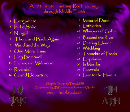 Turk and Gene pretty much write the lyrics to the songs that they sing, although there is always helpful input from both sides. Gene's are the lighter and Turk's are the darker songs and lyrics. Gene's lyric and phrasing style is generally more mystical and uses metaphors here and there, to relate to our own lives. Turk's lyric style is more descriptive and filled with the lore of Middle Earth. This contrast lends itself to the inherent themes within Tolkien's work. In addition to his lead vocals, Turk is the storyteller or narrator throughout the journey. It's something we started long ago, even in concerts. Besides these parts, he also did a great rendition of orcs, ents, wizards, and even Sauron himself (digital effects helped a little!). If you're good, you can decipher every one of these. Anyway, here are some random thoughts about each song's creation and recording.