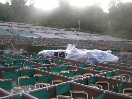 The typically over dramatic LA news broadcasts were on “storm watch”, as were the cast and crew of Journey at the famous Hollywood Bowl.