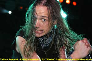 to party! From the moment they bounced on stage to the strains of 'Welcome To The Opera', it was abundantly clear that Toby Sammet and company weren't gonna let anyone go until their soul had been well and truly rocked. Highly reminiscent of Iron Maiden at their intelligent best (helped no end by Sammet's decidedly Bruce Dickinsonesque vocals), Edguy went down a storm with the metal faithful. Promoting their brand new double live extravaganza 'Burning Down The Opera', the band's set was packed with highly infectious metal from the word go.