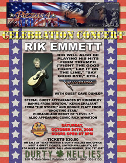 ANOTHER GIANT PREVIEW: For those anticipating just what the new Giant album is all about - here is an exclusive sneak peak MP4 video of scenes from the recording studio, backed with the audio of another brand new track titled - Believer (Redux). The track was written by the amazing team of Erik Martensson / Miqael Persson / Robert Säll and features solos from Dann Huff. Download Video Here. ![]() RICK SPRINGFIELD, SABATON, D-A-D AND ANVIL TO SWEDEN ROCK FESTIVAL 2010: Another four bands have now been confirmed to next year's Sweden Rock Festival. 10 out of a total of around 60 bands are now confirmed. Its been way too long, but finally Rick Springfield will come to Sweden and of course to Sweden Rock Festival. He has had a long career as an actor, but it is with his music he really hit the big time, especially in the 80's when he released classic albums like "Working Class Dog", "Living In Oz" and "Rock Of Life". With last years "comeback" album "Venus In Overdrive", which broke the Billboard top 30, he showed his class as a song writer once again and live it's heavier and better than you can ever imagine. We are also happy to announce the return to the festival of one of Sweden's biggest metal bands, Sabaton. With a brand new album coming out this spring they will come to Sweden Rock to deliver the biggest and baddest stage show they have ever made. Those who are into melodic metal simply cannot miss this! From Denmark comes one of the bands we get the most wishes for: D-A-D. As usual, they will give the audience heavy rock with a very characteristic sound influenced by both country and punk, and classic songs like "Sleeping My Day Away", "Bad Craziness" and "Laugh 'n a ½". Last but not least Anvil, a classic Canadian heavy metal band that will do their second gig at the festival and this time they are riding high on the waves of the highly acclaimed documentary "The Story Of Anvil". A movie that show how this band has been fighting tooth and nail from the 80´s until now without ever really catching a break. After this film though, the world finally seems to be ready for them and Anvil is bigger than ever! Sweden Rock Festival is held in Sölvesborg in southern Sweden on June 9-12 2010. Tickets are on sale on our homepage: www.swedenrock.com. Out of a total of around 60 bands on the main stages, the following have been announced so far: Bachman & Turner (Can) Rick Springfield (Aus/Us) Sabaton (S) D-A-D (DK) Saga (Can) Unisonic (D) Bigelf (US) Anvil (Can) Mother's Finest (US) Jorn (N). More bands to be announced soon! ![]() ROCKING FOR A GOOD CAUSE: For the 13th year, Rock 4 Xmas will bring together a who's who of the rock-and-roll world and hit the stage to raise money to benefit the less fortunate. 100% of the net proceeds from tickets sales will benefit Toys For Tots. This year's slate of shows is once again headlined by the legendary Eddie Money, and will feature performances by Joey Molland of Badfinger, Kelly Keeling formerly of Blue Murder and Trans-Siberian Orchestra and Terry ILous of XYZ. Serving as MC for the shows will be Butch Patrick, best known as Eddie from the classic television show The Munsters. The tour shapes up as follows: December 3 at The Crazy Donkey in Farmingdale, NY; December 4 at the Seaport Inn and Marina in Fairhaven, MA;December 5 at the Cape Cod Community College in Hyannis, MA; December 13 at Johnny D`s in Somerville, MA; with future shows on the way in New England before wrapping up in Uncasville, Connecticut at the Mohegan Sun Casino on December 14. As an added treat, Randy Jackson of Zebra will be a special guest at the Crazy Donkey show in Farmingdale, performing Zebra hits as part of the Rock 4 XMAS lineup. Monies raised through the Rock 4 XMAS shows will benefit local charities in each host location that help families in need enjoy a happy holiday season. "Many of these stars have already lived that partying, rock-and-roll lifestyle," said Wayne Morrison, event organizer and head of the Rock 4 XMAS Foundation. "Now they just want to help." "These shows are always very intimate," Morrison said. "When the performers are not on stage, they are meeting the people and signing autographs. They really want to meet the people of the communities they are helping." Tickets are $20, and expected to be right around that mark for subsequent shows as well. "We know with the way the economy is, it's hard to find the cash to go out to rock shows," he said. "We want to keep it affordable, so that people can still get that good feeling from helping others without hurting themselves financially." Rock 4 XMAS is also releasing a "Best Of" CD this season, bringing together some of the greatest tracks of the first two benefit albums on one disc. It will also feature new tracks such as "On a Clear Night," performed by Eddie Money, and "My Christmas Tree is Haunted," written by noted paranormal author Jeff Belanger. In addition to raising money and collecting other donations for needy families, Morrison is also looking for volunteers to help with the show. In addition, individuals can donate frequent flyer miles to help defray the expense of flying in all the performers. All donations are tax deductible. Updates regarding the shows and CD will be posted frequently on the foundation's web site, www.rock4xmas.com. The site already features numerous video and audio clips from past events. Tickets for the Seaport Inn show can be purchased by contacting the Inn at (508) 997-1281 or by visiting www.seaportinnandmarina.com. Tickets for Cape Cod Show available at Puritan Mens Store and Spinnaker Records, both in Hyannis. FRANK VESTRY LIVE: Frank Vestry and friends' to perform at "Kids' Song" Fundraiser Show: The event will take place on Sunday, December 6, 2009 between 2:00 PM and 6:00 PM at the Nutty Irishman in Bay Shore, NY. (Doors Open at 1:30 PM) Tickets are $20 at the door the day of the show and all proceeds will go to the kids benefit. For more info about this show go 