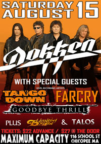 US$15 + $5 shipping (airmail worldwide). Click Paypal link below. ![]() FRONTIERS RECORDS ANNOUNCES - THE NEW STUDIO ALBUM - MAY 2010: ![]() ![]() NEW ROCK CANDY: Rock Candy announce two new releases this month. Autograph 'That's The Stuff' CANDY063 and Fandango 'Cadillac' CANDY064. Both are available immediately from the labels website (www.rockcandyrecords.com) for a limited discount price of £11.99 including postage to anywhere in the world. Details as follows: Autograph's debut album 'Sign In Please' contained a surprise hit single, the infectious 'Turn Up The Radio', whilst a sell out tour supporting Van Halen elevated them into the upper echelons of the eighties hard rock elite. Things were looking more than good. However, when a Stateside tour supporting Mötley Crüe was secured, RCA, their record label, hit the panic button, insisting that in order to keep momentum rocketing the band should get back into the studio and cut a follow up album as quickly as humanly possible. It was inevitable that things began to slide; a rushed choice of producer, a lack of preproduction time and a touring deadline that was looming ever closer. Amazingly, when the album was released its cover had to be changed due to bungled copyright issues. And if that wasn't enough, in order to combat the appearance of Russian band Avtograf (pronounced Autograph), RCA thought it might be a good idea for Autograph to record a cover of Grand Funk Railroad's classic 'We're An American Band' adding it to the record half way through the campaign. Under any other circumstance this set of events might have spelled disaster but for Autograph it was just a one more river to cross and one more hurdle to jump. 'That's The Stuff', despite all the pressures baring down on them, was hailed as another solid slice of prime-time American hard rock, big on hooks and crammed with some of the best guitar playing that Steve Lynch ever recorded. 24-bit remastering from original source tapes, one bonus track, 4,000 word essay about the making of the album and a new interview and full involvement from Steve Plunkett. Additional photos and memorabilia spread out over a 16 page full colour booklet. Track Listing: 1. That's The Stuff 2. Take No Prisoners 3. Blondes In Black cars 4. You'll Get Over It 5. Crazy World 6. Six String Fever 7. Changing Hands 8. Hammerhead 9. Built For Speed 10. Paint This Town Bonus Track: 11. We're An American Band. Fandango, signed to the powerful RCA label, recorded a total of three albums of varying quality and content prior to the release of 'Cadillac', a record which most fans agree finally saw them take flight as a mature and fully confident melodic hard rock band in the finest late seventies tradition. This was tough-guy melodic hard rock with great songs, memorable hooks and punchy guitar work. It was also the coming of age of vocalist Joe Lynn Turner, a man who would, after the demise of Fandango, go on to achieve huge success with a number of projects not least of all as the lead vocalist of both Rainbow and Deep Purple. It was also a record that divided the band internally whilst its commercial failure led to an inevitable final split. Looking back there is no question that 'Cadillac' stands loud and proud alongside revered classic of the genre bolstered by a choice song writing quota, fiery guitar playing and just the right amount of controlled mayhem in the drum 'n bass department. An overlooked classic make no mistake. 24-bit remastering from original source tapes, 4,000 word essay about the making of the album and new interview with Joe Lyn Turner. Additional photos and memorabilia spread out over a 12 page full colour booklet. Track Listing: 1. Blame It On The Night 2. Rock 'N Roll You 3. Hypnotized 4. Don't Waste My Time 5. Stranger (In A Strange Land) 6. Cadillac 7. Fortune Teller 8. Getaway 9. Headliner. xx![]() DOKKEN SIGNS WITH CLEOPATRA RECORDS: Multi-platinum hard rockers Dokken have signed with Los Angeles based Cleopatra Records for a spring 2010 album release. Fresh off their mega-popular internet commercial campaign for Norton Anti-Virus, the legendary southern California band is finishing up final mixes for a greatest hits package coupled with new material that will be released worldwide on Cleopatra's Deadline Records' imprint. The album's first single is a brand new song entitled "Almost Over" that will be made available to music programmers via download thru airplaydirect.com in early 2010. Dokken has sold well over 10 million albums worldwide and continues to tour and enjoy media exposure courtesy of the successful web-commercials for the new Norton Ant-Virus 2010 version. The comedic spots imagine a computer as a chicken and Dokken as a malicious computer virus. Each ad features a different outcome, based on whether or not the "Dokken Virus" was allowed into the system. ![]() RONNIE ACES 1ST CHEMO TREATMENT WITH FLYING COLORS: An update from Ronnie Dio's wife Wendy - "Well, it has been a very exhausting month – after all the neverending tests in Los Angeles, we flew to the Mayo Clinic in Minnesota, and as soon as we arrived, we got a call from the MD Anderson Hospital that they had an appointment for us with the doctor we originally wanted, so we then flew to Houston to the clinic, and of course MORE tests, but Ronnie finished receiving his first chemo treatment on Wednesday, and all is going very well. I would like to thank Tony Martell from the T.J. Martell Foundation, Dr. Stuart Aaronson from Mount Sinai, Lindsay Brown and Mike Carden from Eagle Records, and our very own Dr. Sandeep Kapoor, for all your help in getting us into MD Anderson, and also our friends Geezer and Gloria Butler, who flew to Houston to be with Ronnie while he had his chemo. Ronnie and I are totally overwhelmed by the amount of well wishes that we have received from friends and fans - we are reading them all. Some make us laugh, some make us cry, but all of them are so filled with love that it gives