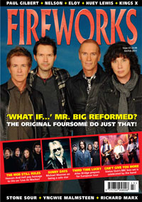 NEW JOURNEY ALBUM DUE: The upcoming new Journey album has a title and a tentative release date. While I can't reveal the title today, stay tuned for further details very soon. I can say that the album is expected out worldwide on or around June 1. MR. BIG HIT IT BIG (AGAIN) WITH STRONG CHART DEBUTS FOR NEW ALBUM "WHAT IF…": Shredder rock-pop metallers Mr. Big are back with brand new album What If… The new studio release finds all four original band members reuniting for their first album in 14 years. Produced by Kevin Shirley (Aerosmith, Rush, Iron Maiden), What If…will now be released in North America on February 15. The first single from the album, "Undertow," will impact at radio this week. Released last month overseas, What If…has hit the European album charts with strong respective debuts including: #36 in Switzerland, #50 in Germany, #71 in Austria, #71 in Italy and #75 in Sweden. What If... will be released in a special edition CD + DVD in digipak, regular CD, vinyl and digital download and in a limited edition luxury box including the CD, DVD, LP and exclusive memorabilia. The DVD includes videos of "Undertow" and "All the Way Up" plus a documentary "making of" the album including interviews and exclusive behind-the-scenes footage of the four band members. Please see below for the complete album track listing. In other Mr. Big news, the band will play their first U.S. show in more than 14 years on April 2nd at the House Of Blues in West Hollywood, CA. More U.S. tour dates will be announced later this year. Formed in 1988, Mr. Big forged its place in hard rock history by combining trademark virtuosic musicianship with stellar vocal harmonies. The original (and now reunited) line-up features vocalist Eric Martin, guitarist Paul Gilbert, bassist Billy Sheehan, and drummer Pat Torpey. The quartet produced numerous hit songs that ranged across a wide array of rock genres, including the ubiquitous "To Be With You," which was a Billboard Hot 100 #1 single in 15 countries for weeks, propelling the band to huge international success and record sales in the multi-millions. ![]() NEW FIREWORKS MAGAZINE OUT AND FIREFEST UPDATE: Firefest 2011 - Firstly, an enormous thank you to everyone who has bought tickets so far. This year has seen an unprecedented initial demand, far out-stripping anything we have ever seen before - and this is before any magazine advertising has been taken out. Almost 90% of the Friday tickets have already been sold, so if you're wanting to see this show please get your orders in ASAP. Sales for Saturday and Sunday are also going extremely well, and it's looking possible that Firefest 2011 might emulate Firefest 3 in being a sell-out. Please Note - Tickets for Firefest 2011 will be sent out starting the end of the week commencing Monday 14th. New Firefest Live Clips Now Online - Speaking of Firefest, two of the sets from previous years that have been highly acclaimed are those of Romeo's Daughter and Honeymoon Suite from Firefest 6. You can now see four full-length DVD clips from these sets at www.rocktopia.com (click on the Rocktopia TV section). These clips join the already available clips of Gotthard's amazing FF3 set, Wig Wam, and Two Fires' legendary set from the Gods 2000. Fireworks #44 Out Now - The latest melodic-rock packed issue of Fireworks Magazine is now available in selected WH Smith stores (check www.rocktopia.net for full list) and online from Rocktopia.net. Issue #44 has a Magnum cover feature and includes interviews with Ten, John Waite, Robin Beck, TNT, Houston, Danny Vaughn, Bad Habit, Rock Sugar, Vega, Miss Behaviour, ColdSpell, arK, Lynam, Pavlov's Dog, Robert Fleischman, Mostly Autumn, Ralf Scheepers, Seventh Wonder and many more! This issue also comes with TWO free CDs in a full colour gatefold sleeve. CD1 contains many tracks from the latest hottest releases, including TNT, Robin Beck, Bad Habit, Oliver Weers, Alexis, Moritz, Tainted Nation and ColdSpell, while CD2 is a wonderful collection of the cream of unsigned acts put together by the TSM (Two Side Moon) promotion company. Hard copy issues can also be bought direct via Paypal, to fireworks.mag@ntlworld.com (£6 UK, £7.50 Europe, £9.50 USA/Rest of World). For UK, cheques for £6 (inc P&P) payable to 'Bruce Mee' can be sent to Fireworks Magazine, 10 Dunnock Close, Offerton, Stockport, SK2 5XD. CD1 1. TNT – Ship in the night 2. Robin Beck – The One 3. Bad Habit – In the Heat of the Night 4. Danger Zone – Line of Fire 5. Arryan Path – Angel With no Destination 6. Tainted Nation – Dare You 7. Miss Behaviour – 1988 8. ColdSpell – Run For Your Life 9. 8-IS – Fallin' In Your Eyes 10. Moritz – Who Do You Run To 11. Hell in the Club – On the Road 12. Alexis – Golden Path 13. Seventh Wonder – Alley Cat 14. The Apple Bros – What You Put Me Through 15. Lowlands – Gotta Be (Something Out There) 16. Oliver Weers – Devil's Chains 17. Haven – Proud Soldiers 18. Bad Things – Prison Train. CD2 1- M.I.C. - Barbie-Lady 2- Ghost – Alive 3- Livesay - Awaken The Giant 4- Sweetkiss Momma - Come Clean 5- Wiser Time - Love And Devotion 6- Hion Martell - Wasting Time 7- Marshmellow Overcoat - She's A Winner 8- The Dreaming Tree - Silence Won't Steal 9- Four Trips Ahead - Remembering Who I Am 10- Eloah - What You Mean To Me 11- Bodenrocker - Scooter 12- Conflux - Luncheons & Wagons 13- Shot - Axegrinder 14- Lachlan Horne - Be Like You 15- Rampart - Mirror To Dreams 16- Tubefreeks - Blackwater Rise 17- Smell My Pillow - Life's Too Short 18- E.Z. Riders - Let Me Be Your Man 19- Charge Of The Light Brigade - Last Door Down. ![]() DON'T STOP BELIEVIN' – THE UNTOLD STORY OF JOURNEY BY NEIL DANIELS: Published By Omnibus Press, May 3. The First Ever In Depth Biography Of Journey. Journey are one of the most successful American melodic rock bands in history with record sales of over 75 million. The recent phenomenal success of 'Don't Stop Believin'' – the most downloaded song