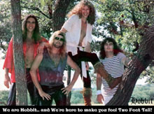 "Two Feet Tall" (the CD) was beginning to take on shape. Soon after, B.S.A. took the band to New York, where the recording (done at Wizard studios and mixed at The Record Plant) turned a dream into a reality (2nd Age). During this time, along with many self-produced concerts and countless club dates, Hobbit opened for such acts as: Cheap Trick, Loverboy, Nightranger, Quiet Riot, Axe, Iron Butterfly, and Humble Pie (a huge thank you to Mikel Leff/Beaver Prod. for most of those!). They were also featured on Q-102 and Zooberry LP's out of Dallas/Ft.Worth, including substantial air-play of "Midyear's Eve" and "Need Your Love" from those respective radio stations.